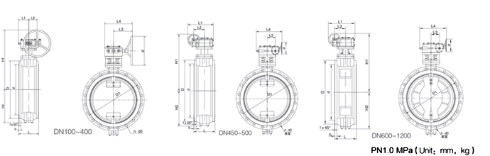 DN Gear Operator L D D1 d n d0 b f H1 H2 L1 L2 L3 L4 Φ Weight