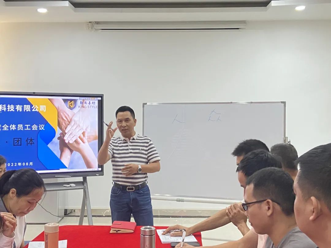 2022年8月20日, 總經(jīng)理丁和南先生與全體員工召開了第二季度的員工會議, 會議主題為《個(gè)人·團(tuán)體》。 在會議中, 丁總為大家?guī)砹司实馁x能, 向大家分享了在生活工作中如何平